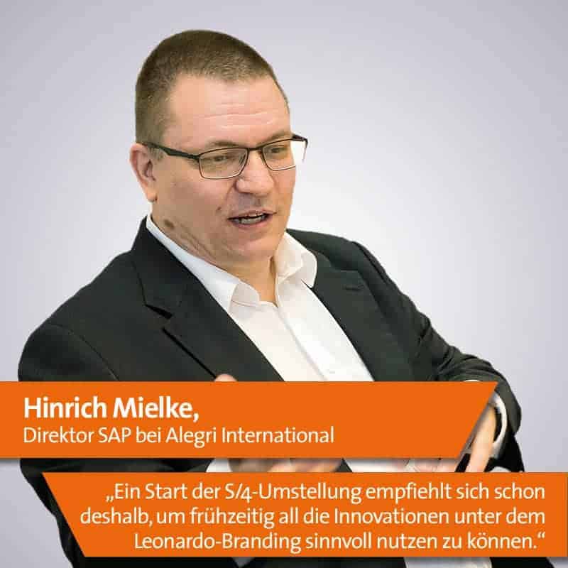 Ein Start der Umstellung auf S/4 empfiehlt sich schon deshalb, um frühzeitig all die Innovationen unter dem Leonardo-Branding sinnvoll nutzen zu können. Siehe auch der Beitrag in der letzten E-3 Ausgabe zum leonardo.report. (E-3 Juni 2018, Seite 57).