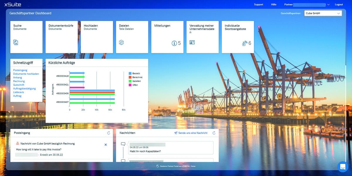 Dashboard des xSuite Business Partner Portal, Bildquelle xSuite.