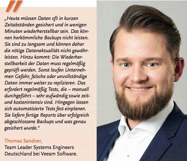 Verfügbarkeit und Datenschutz waren also zu keiner Zeit wichtiger als heute. Zugleich stehen auch IT-Abteilungen vor ihren größten Aufgaben: Geschäftskritische Anwendungen werden vermehrt in virtualisierten Infrastrukturen betrieben, es entstehen ganze Landschaften virtueller Maschinen.