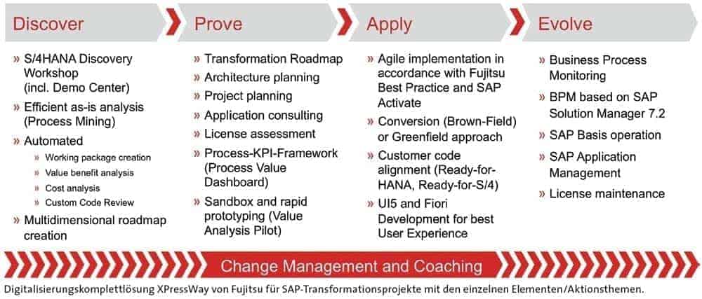 For S/4 Hana deployment and the use of other Hana-based solutions, a comprehensive portfolio of services and solutions is provided by Fujitsu. Whereby managed SAP services are provided via 16 data centers and 2800 SAP consultants support customers with words and deeds.