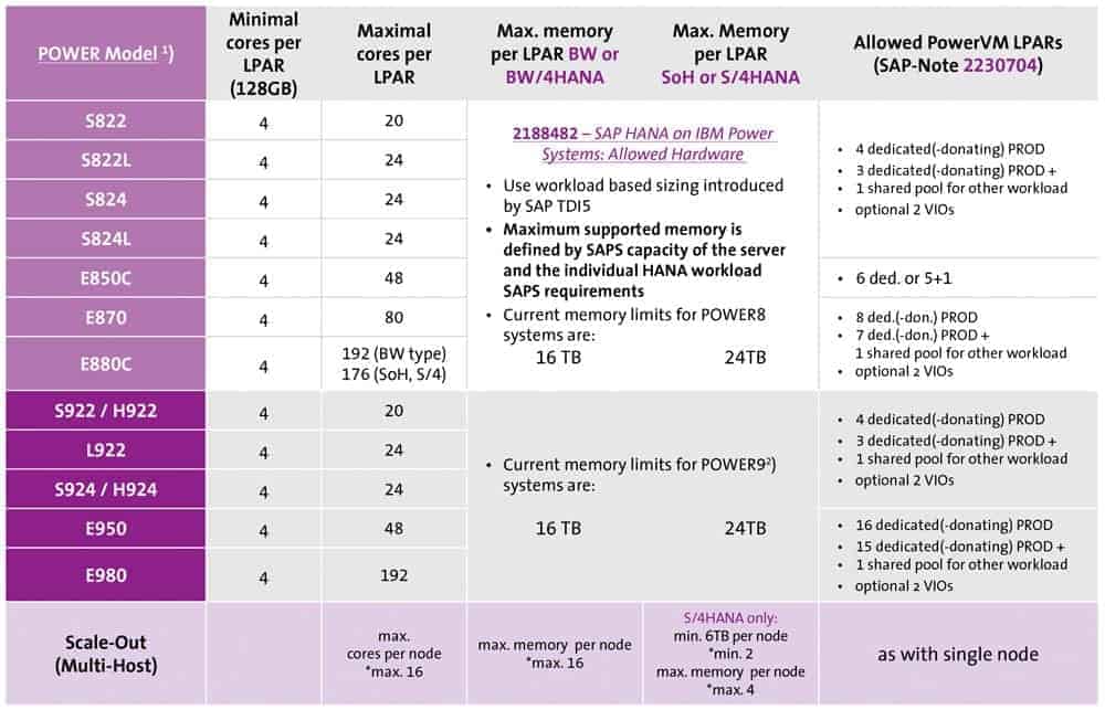The only drawback is that a Power machine with 4 TB cannot provide 4069 GB because the virtualization itself needs some GB. In most cases, however, customer can accept that 1 TB means 1000 GB – making the supposed problem disappear. New IBM Power 9 machines, which provide up to 16 TB with high density DIMMs and up to 8 TB with more cost-efficient DIMMs, grant yet another opportunity to optimize system landscapes even further.