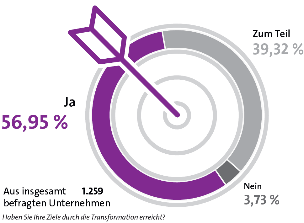 One of the key questions relates to the goals set for the transformation and whether these have been achieved. The result confirms that respondents often underestimate the modernization of their IT systems. From an international perspective, only just over half (57%) of respondents confirmed that they had achieved the defined goals.