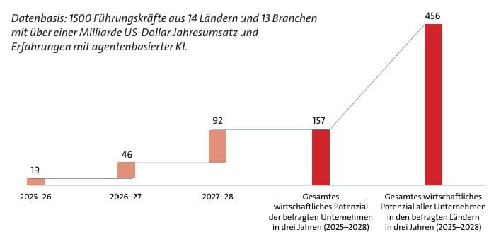 Según un estudio reciente del Instituto de Investigación Capgemini, los sistemas de IA basados en agentes albergan un potencial económico de hasta 450.000 millones de dólares para 2028. Este crecimiento se basa principalmente en el aumento de las ventas y la mejora de la eficiencia. El mayor valor añadido se crea cuando las personas siguen participando activamente.