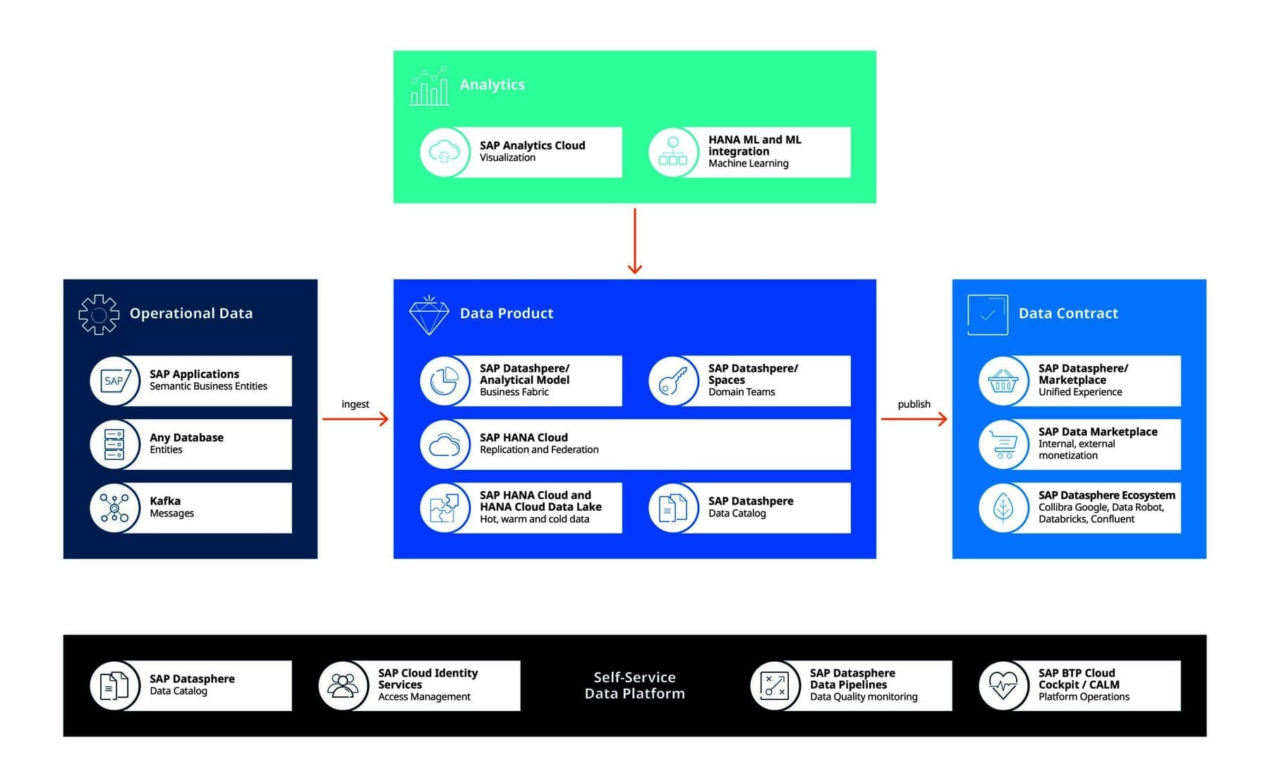 Esto permite un acceso escalable y sin fisuras a los datos críticos para el negocio mediante la creación de una capa de datos armonizada para todas las fuentes de datos SAP y no SAP, ya sean en la nube, on-prem o híbridas. Funcionalmente, la solución combina integración de datos, catalogación de datos, modelado semántico, almacenamiento de datos, federación de datos y virtualización de datos.