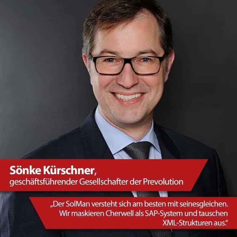 "Queríamos crear una integración realmente sólida, fácil de mantener y que funcionara de forma fiable. Naturalmente, SAP Solution Manager se lleva mejor con sus pares, es decir, con los sistemas SAP. Por eso enmascaramos Cherwell como un sistema SAP, por así decirlo, e intercambiamos las mismas estructuras XML que proporcionaría un sistema SAP", afirma Sönke Kürschner, socio gerente de Prevolution y experto en gestión de servicios empresariales.