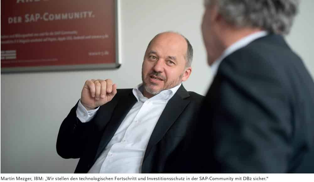 Mezger: En lo que respecta a DB2, estamos al lado de nuestros clientes: Siempre estamos dispuestos a cooperar con SAP en amplias áreas y nuestras inversiones se centran en estos nuevos campos, también porque las cooperaciones con otros proveedores de ERP se benefician igualmente de las nuevas inversiones en DB2.