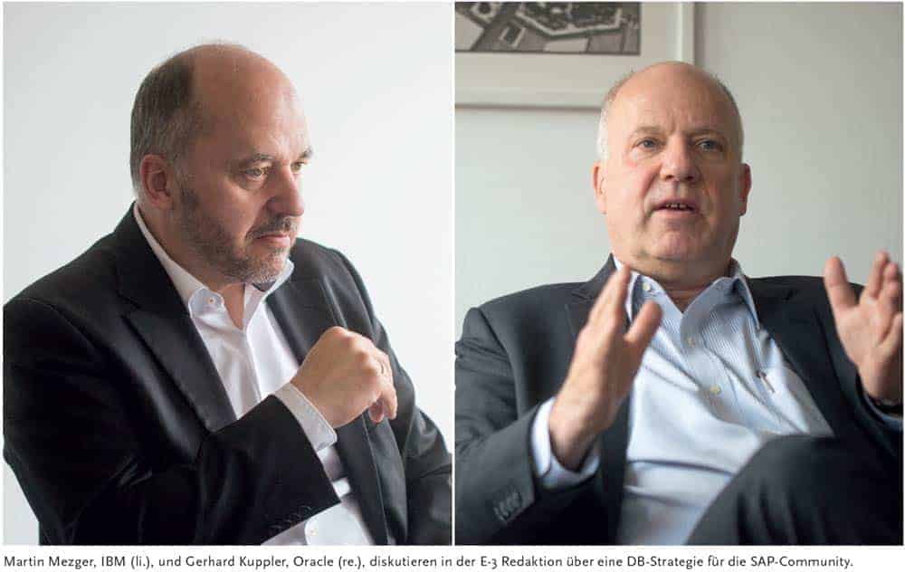 E-3 Magazine invitó a IBM y Oracle a una mesa redonda sobre bases de datos en la redacción de Múnich. Martin Mezger, SAP Business Development Executive - IBM Analytics, y Gerhard Kuppler, Vice President SAP Alliances, Oracle Corporation, debatieron con el redactor jefe Peter M. Färbinger.