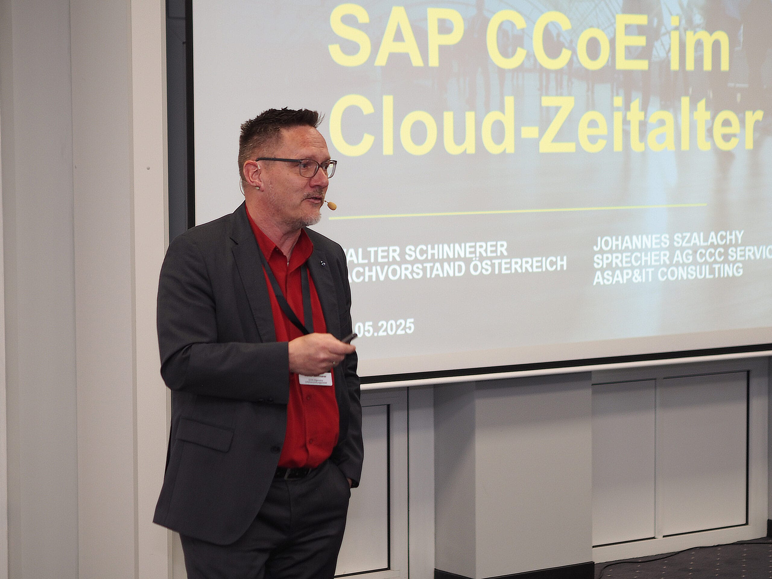 Walter Schinnerer, membre du conseil d'administration de l'association des utilisateurs SAP germanophones (DSAG e. V.), présente le nouveau CCoE SAP et SAP for Me en se basant sur sa propre expérience. Il agit à l'interface entre les utilisateurs, DSAG et SAP. Il s'agira d'une conférence obligatoire pour la communauté SAP.