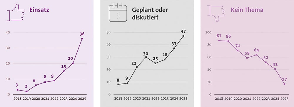 Percée dans l'utilisation de l'IA. Dans quelle mesure votre entreprise utilise-t-elle l'IA ou planifie-t-elle ou discute-t-elle de son utilisation ? Données en pourcentage (n=604). Non représenté : "Ne sait pas/non. A.". Source : Bitkom Research 2025.