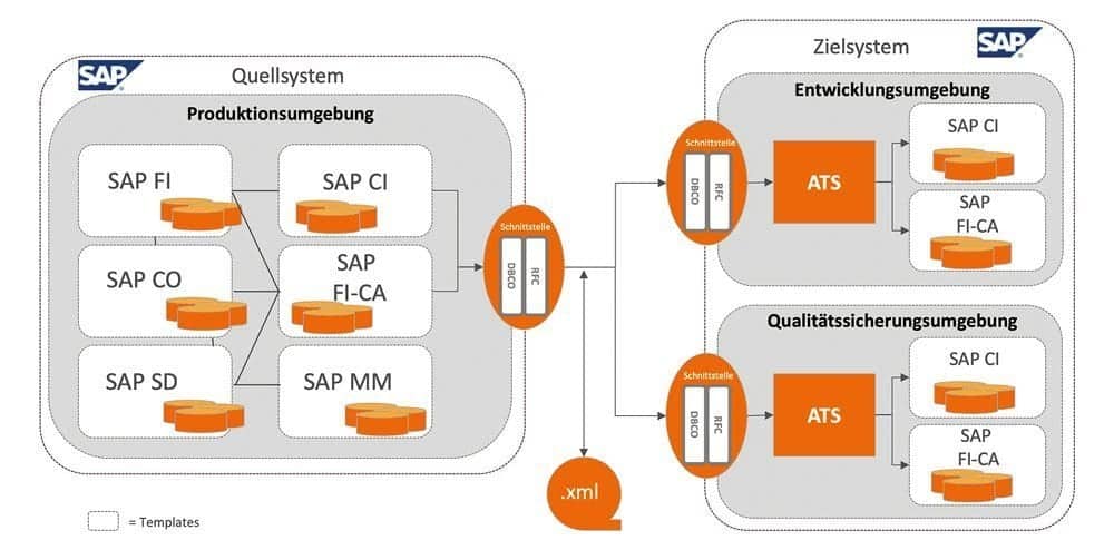 Il existe des modèles de Customizing pour toute une série de modules, par exemple pour FI-CA/RM-CA et pour les solutions de branche SAP comme IS-U. Les tables propres au client peuvent également être étendues individuellement via le Customizing ATS. Le moteur ATS n'est installé que sur les systèmes récepteurs, c'est-à-dire sur le système de test, d'assurance qualité ou de développement. L'installation proprement dite prend environ une demi-journée. Les transferts de données d'application du système (ou des systèmes) source vers le système cible s'effectuent via des interfaces RFC et DBCO. Un composant de gestion et de surveillance est également mis à disposition, permettant de savoir à tout moment quelles données d'application ont été transférées ou où des erreurs sont survenues. Bien entendu, la solution permet également d'actualiser à tout moment les données de test par simple suppression et importation de fichiers.
