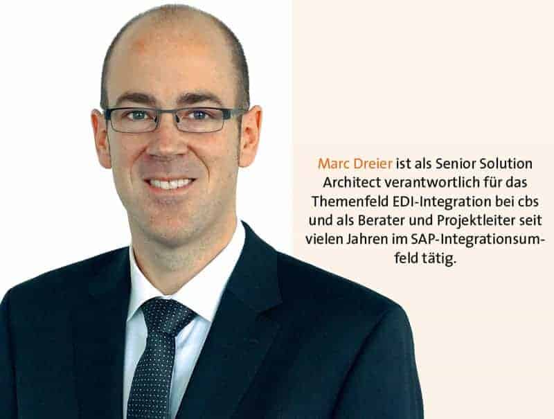 Marc Dreier est Senior Solution Architect, responsable du domaine thématique de l'intégration EDI chez cbs. Il travaille depuis de nombreuses années dans l'environnement d'intégration SAP en tant que conseiller et chef de projet.