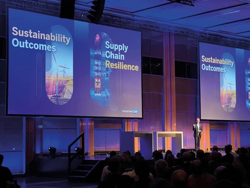 Jürgen Müller, directeur technique de SAP, sur la scène des journées technologiques DSAG 2022 à Düsseldorf. Dans sa keynote, il a souligné l'importance et la nécessité d'une résilience de la chaîne d'approvisionnement dans le cadre d'une approche de l'IoT à l'ERP.