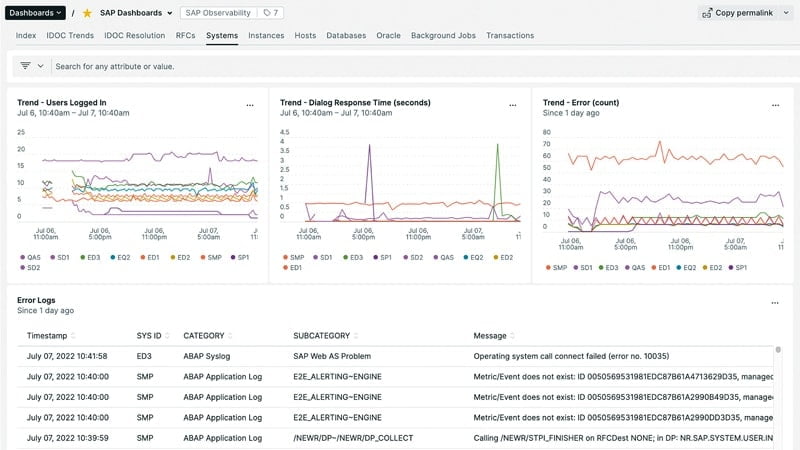 Les administrateurs SAP ont certes acquis un solide savoir-faire en matière de solutions de surveillance et de gestion éprouvées de SAP (par exemple Solution Manager), mais identifier, comprendre et résoudre rapidement les problèmes dans les environnements SAP reste un défi. Souvent, les erreurs sont corrigées manuellement, en parcourant de nombreux écrans SAP, tableaux et journaux. La communication avec les autres équipes est rendue difficile par l'absence d'outils, de données télémétriques et de tableaux de bord communs.